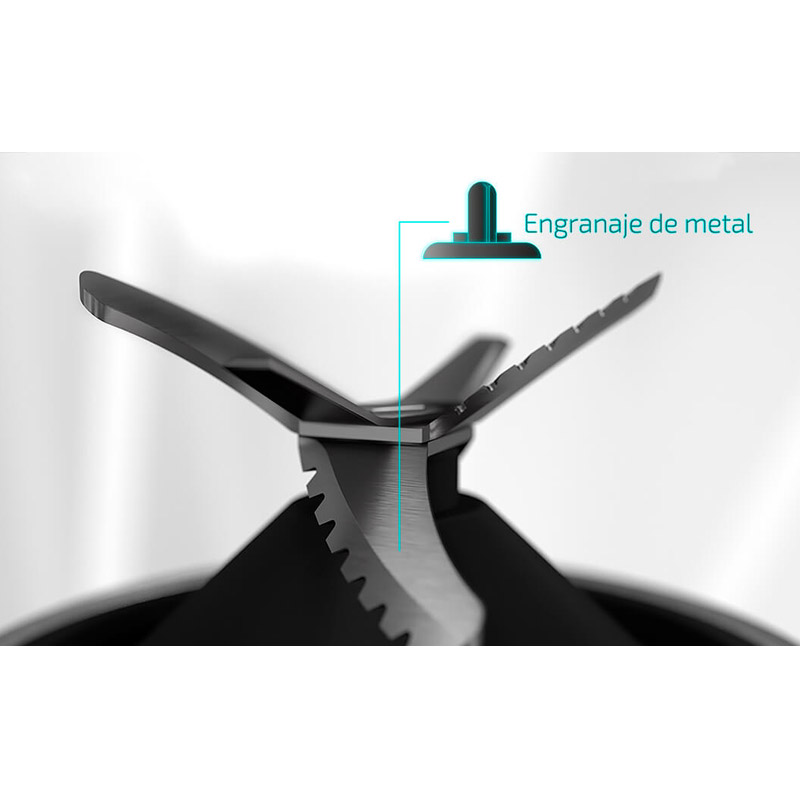Χάρη στο μεταλλικό του γρανάζι, μεταδίδει πολύ καλύτερα την υψηλή ισχύ που φτάνει μέχρι 33500 περιστροφές / λεπτό, έτσι ώστε τα παρασκευάσματα σας να είναι έτοιμα να εξυπηρετήσουν με τον ταχύτερο τρόπο. Επιπλέον, η κανάτα έχει σχεδιαστεί για να εκμεταλλεύεται τις μεγάλες ταχύτητες και να επιτυγχάνει τέλεια αποτελέσματα σε σύντομο χρονικό διάστημα. Μπορείτε να διαμορφώσετε την ταχύτητα μέχρι 5 επίπεδα για να βεβαιωθείτε ότι οι προετοιμασίες σας έχουν το αποτέλεσμα που θέλετε. Επιπλέον, περιλαμβάνει τη λειτουργία Turbo με την οποία δίνουν μικρές ωθήσεις στη μέγιστη ισχύ.