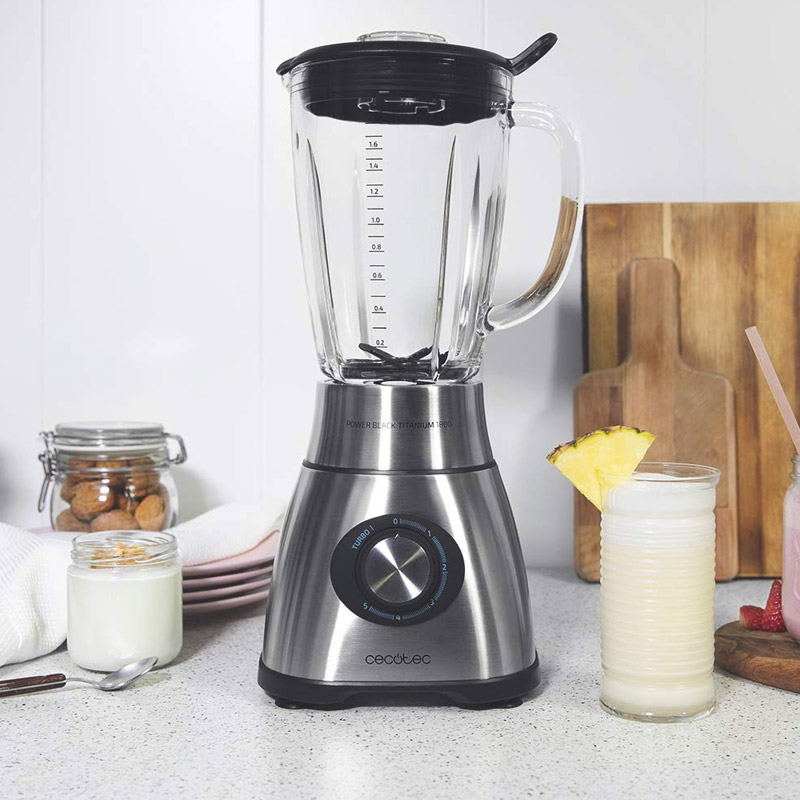Ανακαλύψτε το Power Black Titanium 1800, το ισχυρότερο μπλέντερ με γυάλινη κανατά της Cecotec. Με τη δύναμη των 1800 W δεν θα αντιμετωπίσετε καμία δυσκολία στην επεξεργασία οποιουδήποτε υλικού, ανεξάρτητα από το πόσο σκληρό είναι, παίρνοντας πάντα επαγγελματικά αποτελέσματα. Θα αποτελέσει ιδανικό συμπλήρωμα στην κουζίνας σας, χάρη στον κομψό σχεδιασμό του με τελειώματα από ανοξείδωτο ατσάλι.